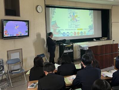 観光科3学年の課題研究にて、観光SDGsについての2回目の講話が授業で実施されました。