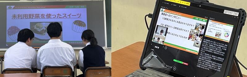 パソコン部の2年生は、「SDGs活動」ならびに「ムーンショット目標」※1の達成に向けた研究活動の一環として未利用野菜の活用に取り組んでいます。