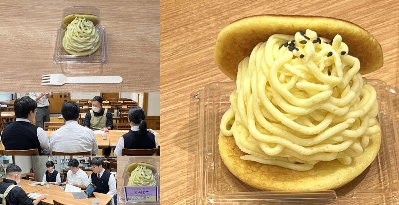 7月に商品企画プレゼンテーションでお伺いした松島町 農業の只木様から未利用野菜のサツマイモをいただき、牛たん炭焼 利久 五大堂店 店長 佐藤様が生徒の商品企画プレゼンテーションからリファインしてくださり、素晴らしいスイーツに仕上げていただきました。